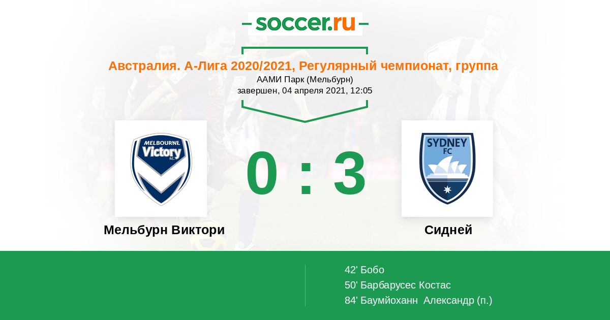 Мельбурн Виктори - Сидней: обзор матча 4 апреля 2021