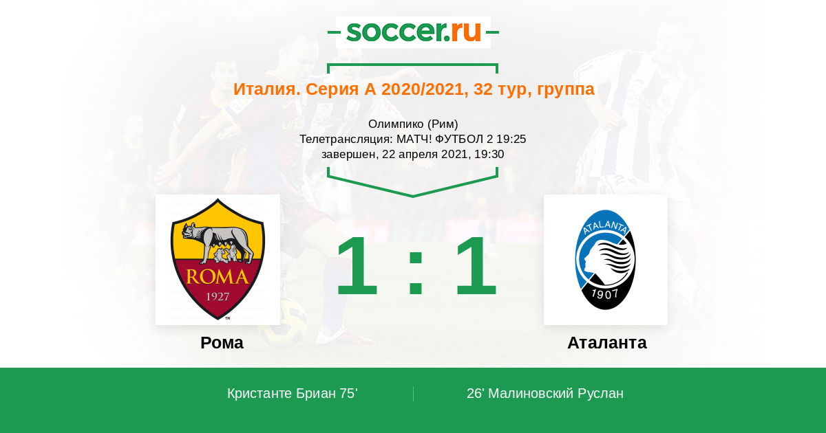 Рома - Аталанта: обзор матча 22 апреля 2021