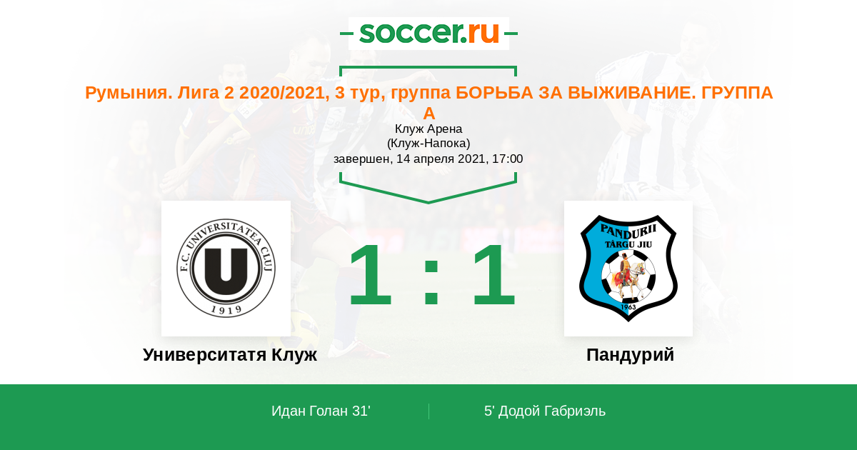 Университатя Клуж - Пандурий: обзор матча 14 апреля 2021