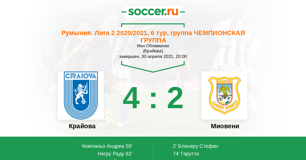 Крайова - Миовени: обзор матча 30 апреля 2021