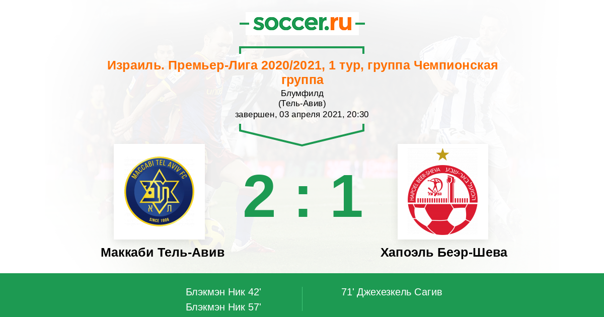 Маккаби Тель-Авив - Хапоэль Беэр-Шева: обзор матча 3 апреля 2021