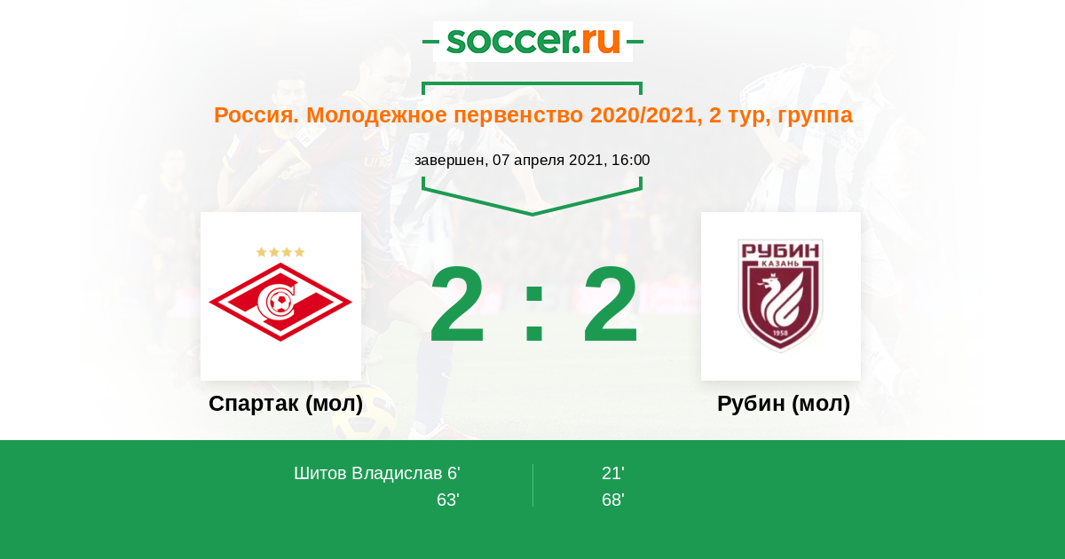 Спартак (мол) - Рубин (мол): обзор матча 7 апреля 2021