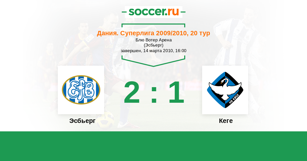 Эсбьерг - Кеге: обзор матча 14 марта 2010