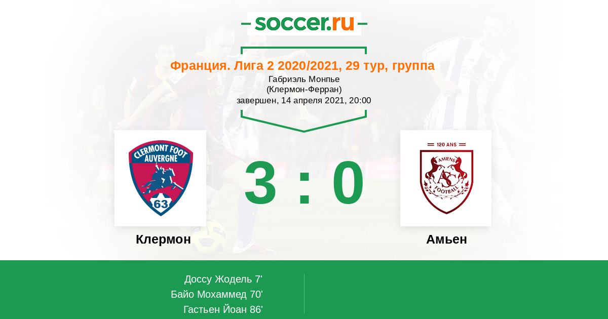 Клермон - Амьен: обзор матча 14 апреля 2021