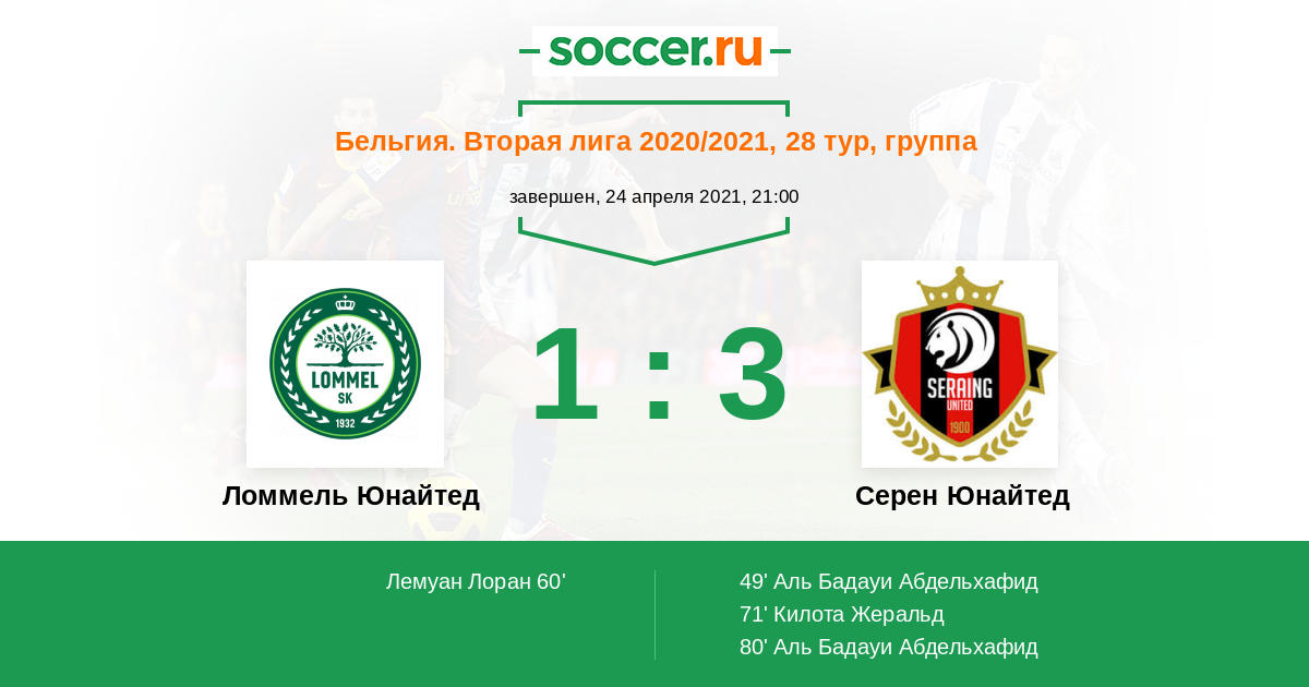 Ломмель Юнайтед - Серен Юнайтед: обзор матча 24 апреля 2021