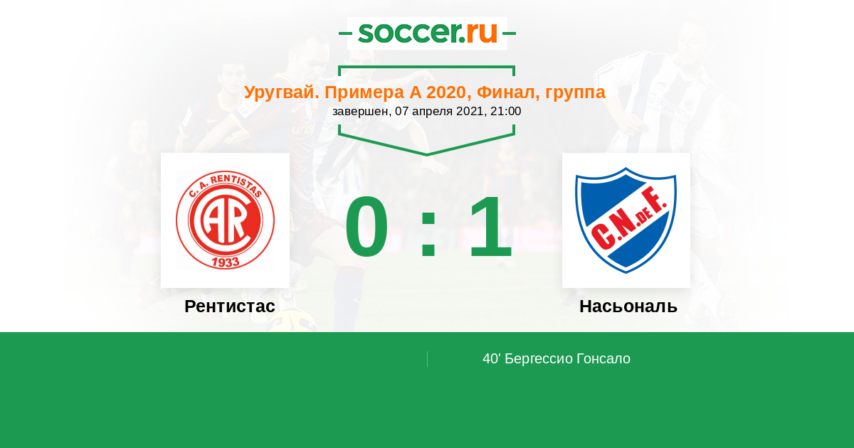 Рентистас - Насьональ: обзор матча 7 апреля 2021