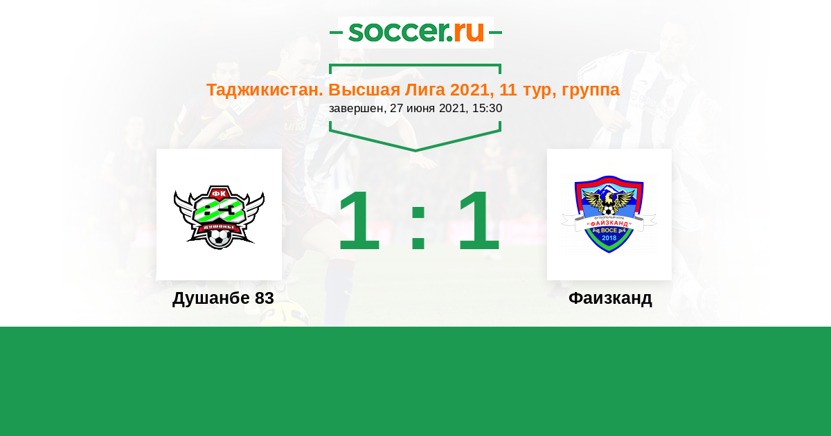 Душанбе 83 - Фаизканд: обзор матча 27 июня 2021