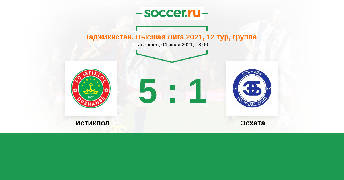 Истиклол - Эсхата: обзор матча 4 июля 2021