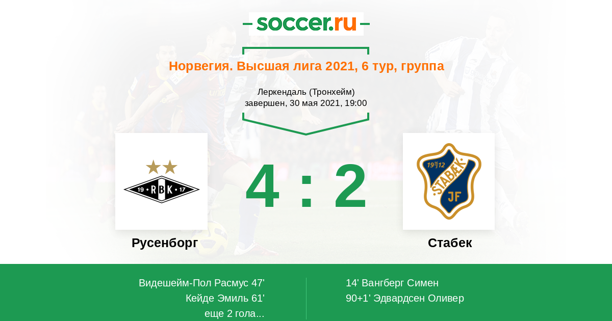 Русенборг - Стабек: обзор матча 30 мая 2021