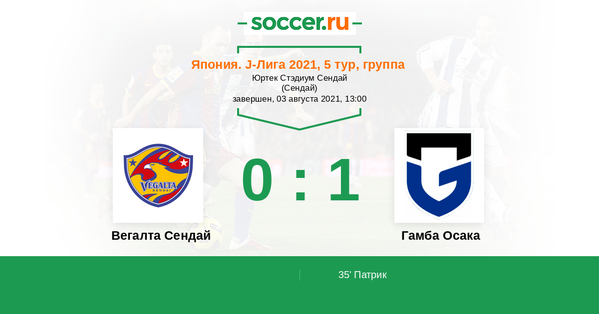 Вегалта Сендай - Гамба Осака: обзор матча 3 августа 2021