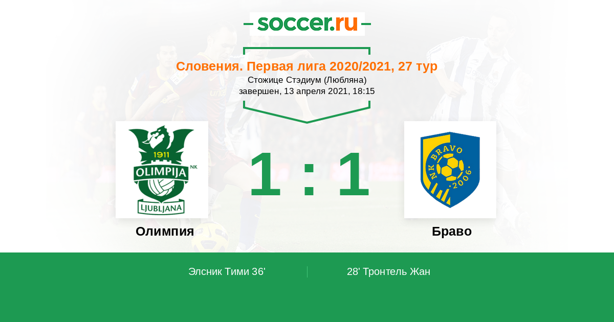 Олимпия - Браво: обзор матча 13 апреля 2021