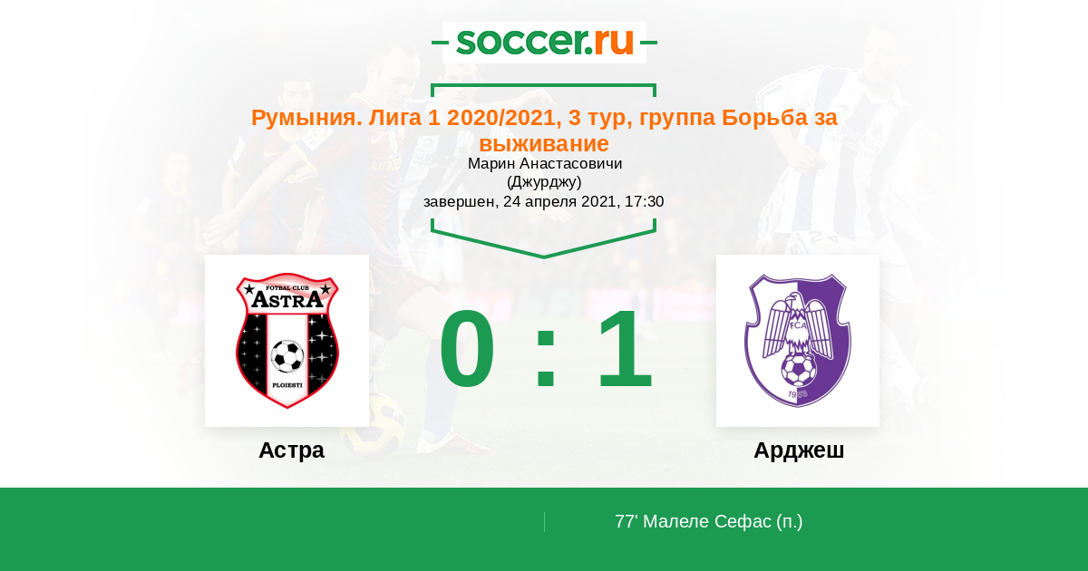 Астра - Арджеш: обзор матча 24 апреля 2021