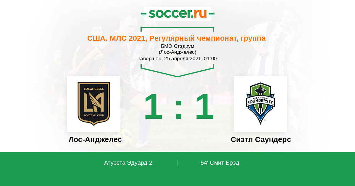Лос-Анджелес - Сиэтл Саундерс: обзор матча 25 апреля 2021