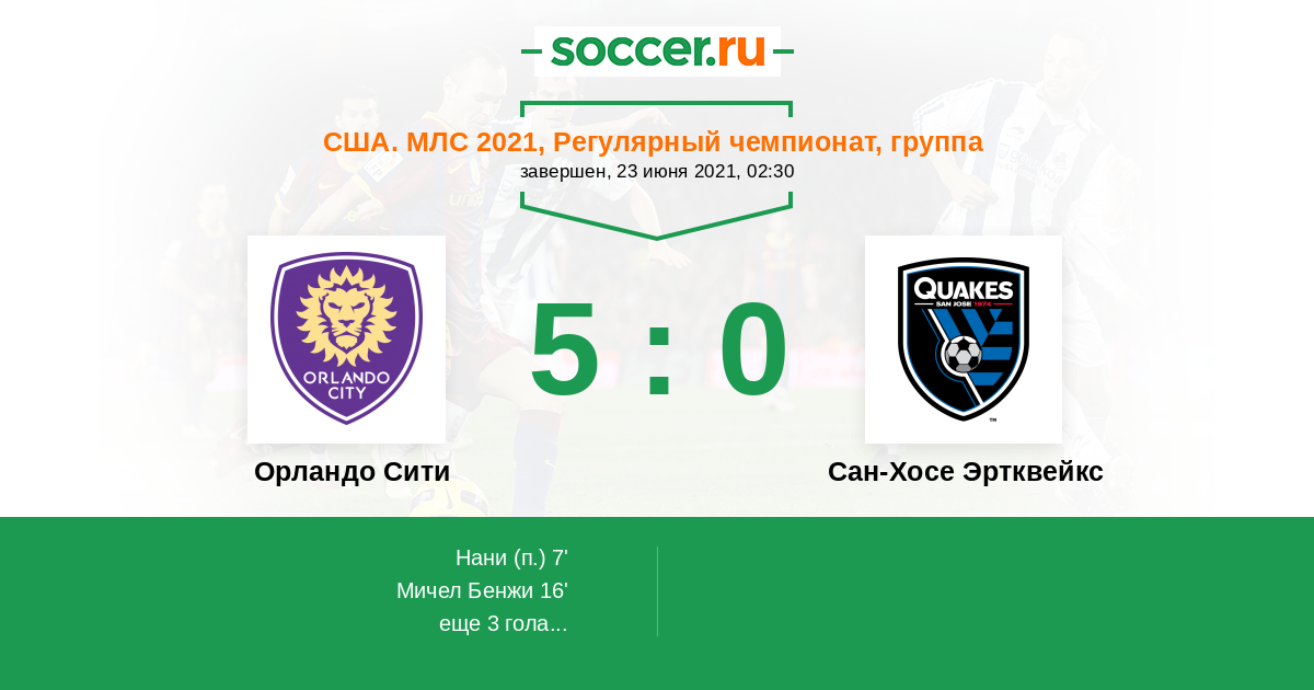 Орландо Сити - Сан-Хосе Эртквейкс: обзор матча 23 июня 2021