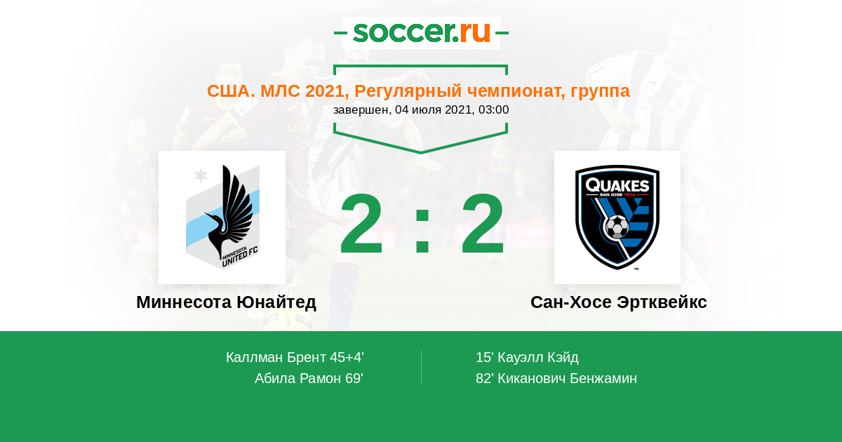 Миннесота Юнайтед - Сан-Хосе Эртквейкс: обзор матча 4 июля 2021