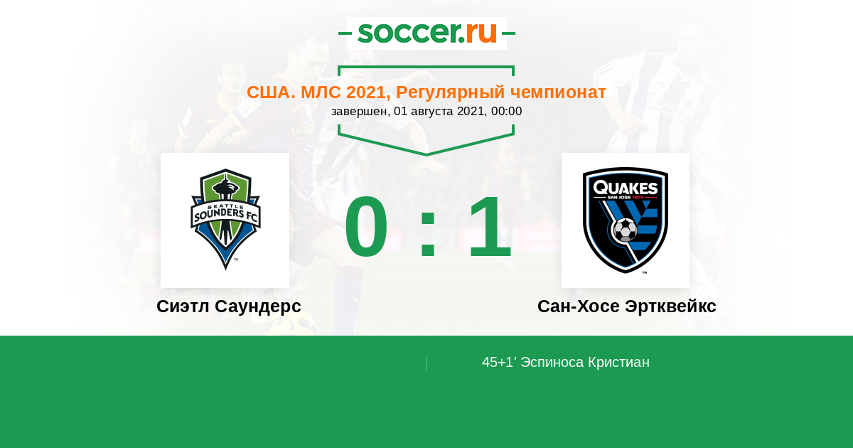 Сиэтл Саундерс - Сан-Хосе Эртквейкс: обзор матча 1 августа 2021