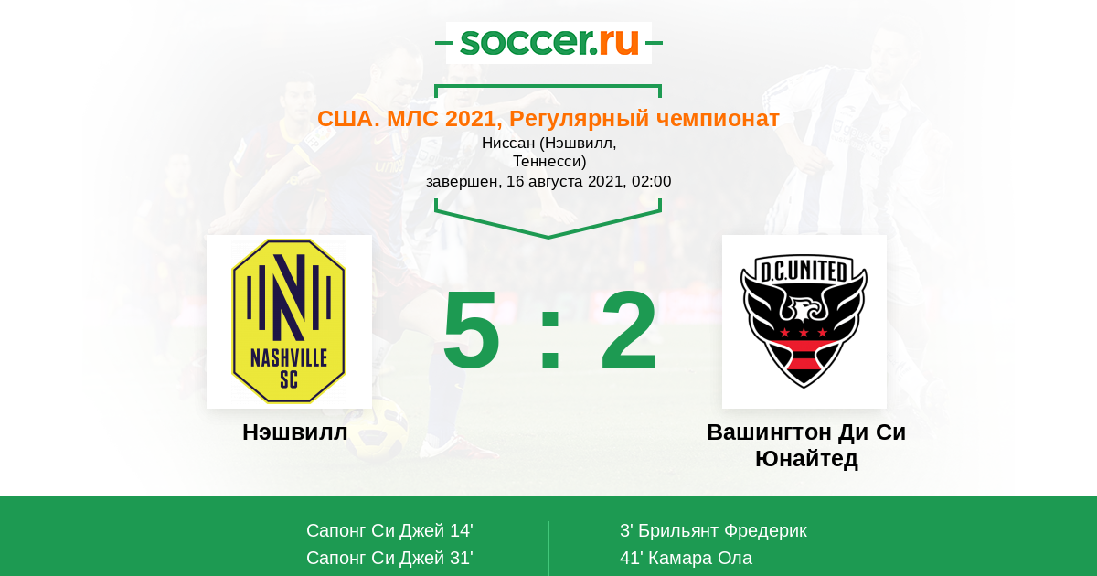 Нэшвилл - Вашингтон Ди Си Юнайтед: обзор матча 16 августа 2021
