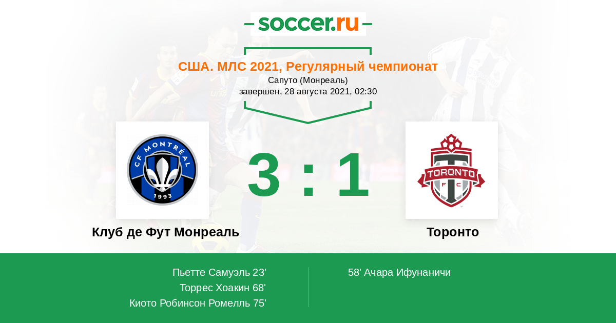 Клуб де Фут Монреаль - Торонто: обзор матча 28 августа 2021
