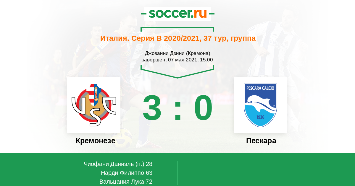 Кремонезе - Пескара: обзор матча 7 мая 2021