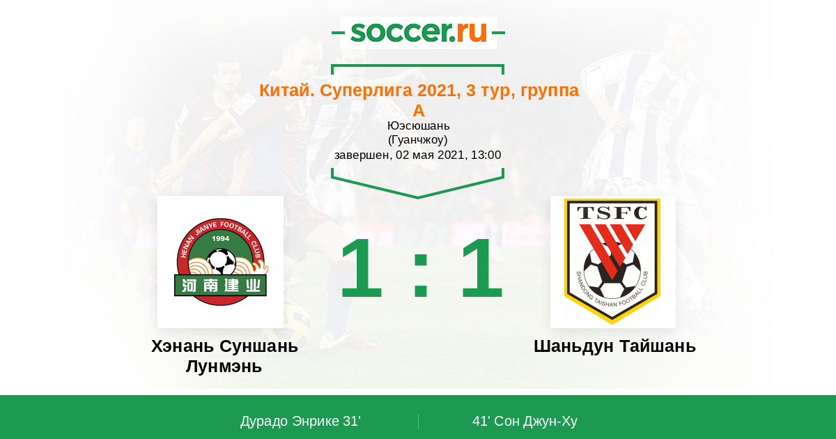 Хэнань Суншань Лунмэнь - Шаньдун Тайшань: обзор матча 2 мая 2021