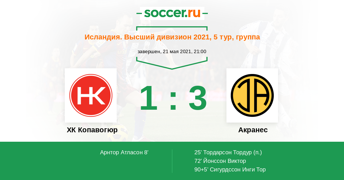 ХК Копавогюр - Акранес: обзор матча 21 мая 2021
