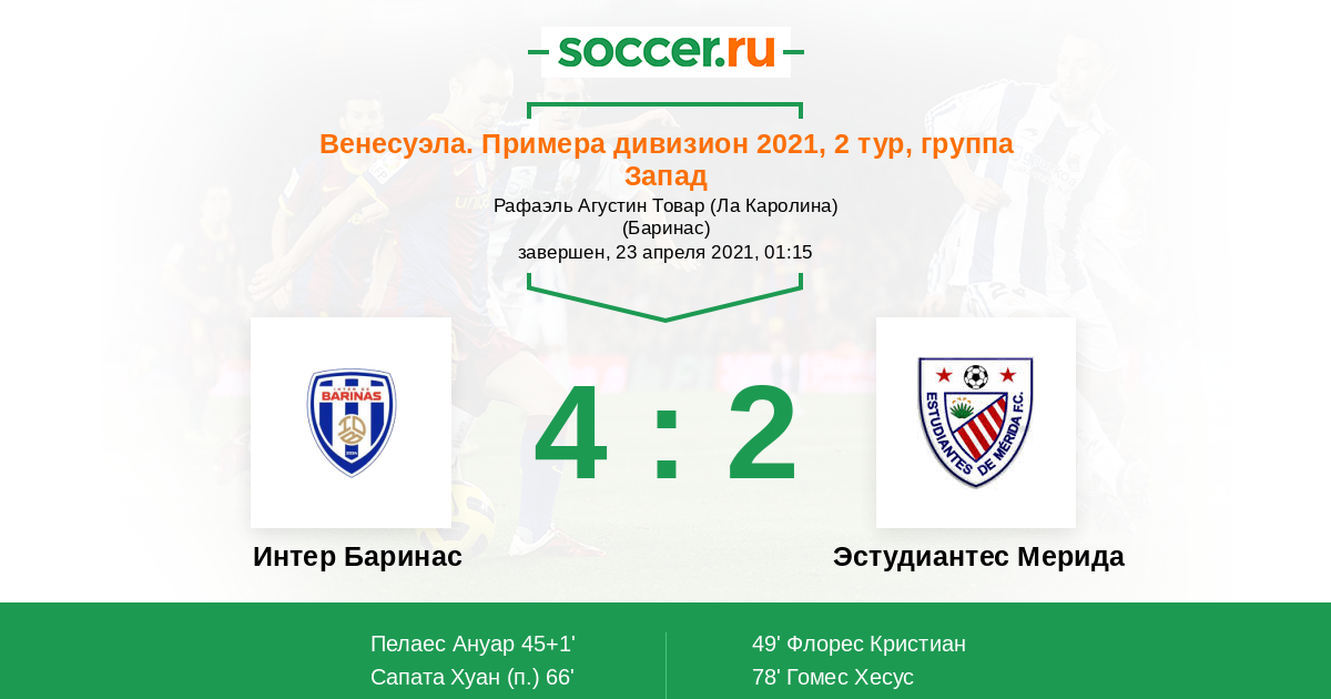 Интер Баринас - Эстудиантес Мерида: обзор матча 23 апреля 2021