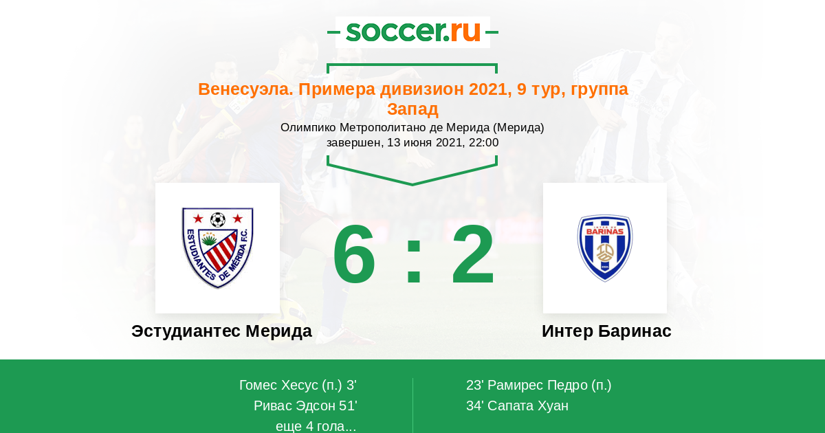 Эстудиантес Мерида - Интер Баринас: обзор матча 13 июня 2021