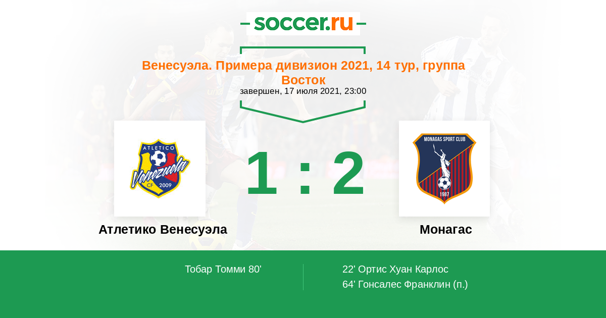 Атлетико Венесуэла - Монагас: обзор матча 17 июля 2021
