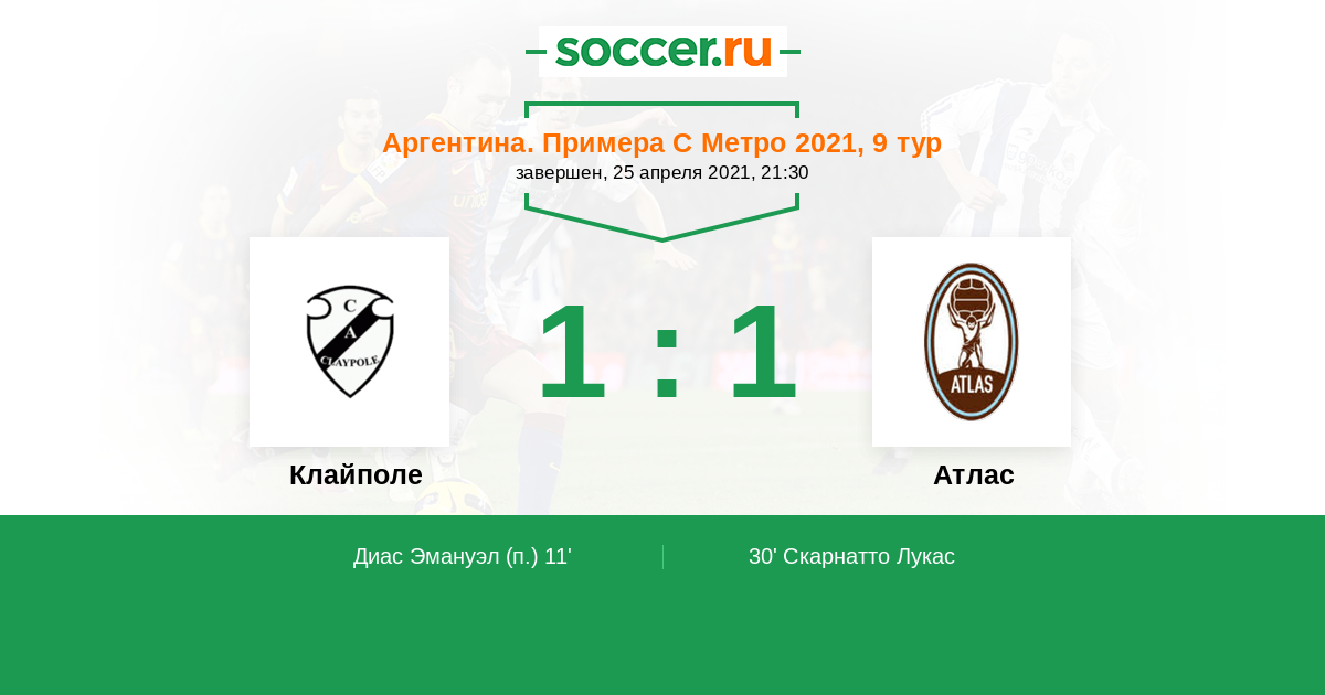 Клайполе - Атлас: обзор матча 25 апреля 2021
