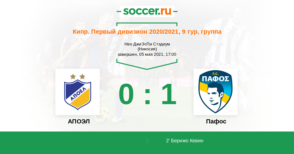 АПОЭЛ - Пафос: обзор матча 5 мая 2021