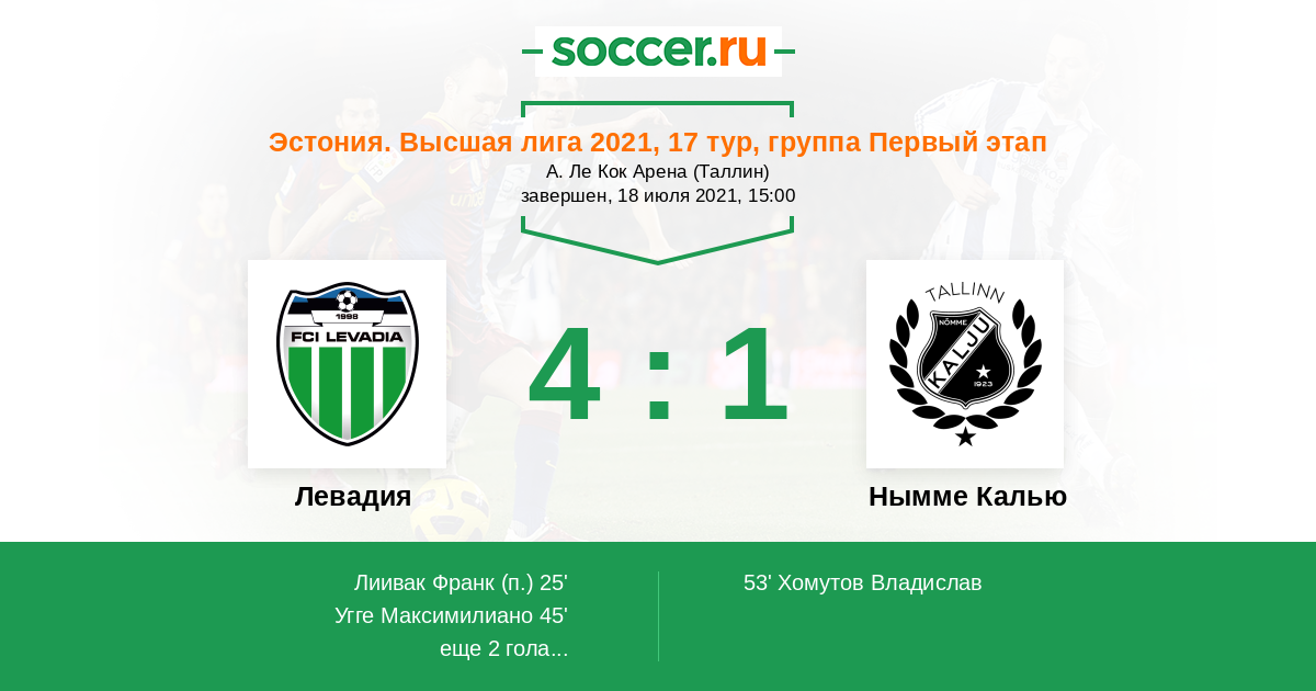 Левадия - Нымме Калью: обзор матча 18 июля 2021