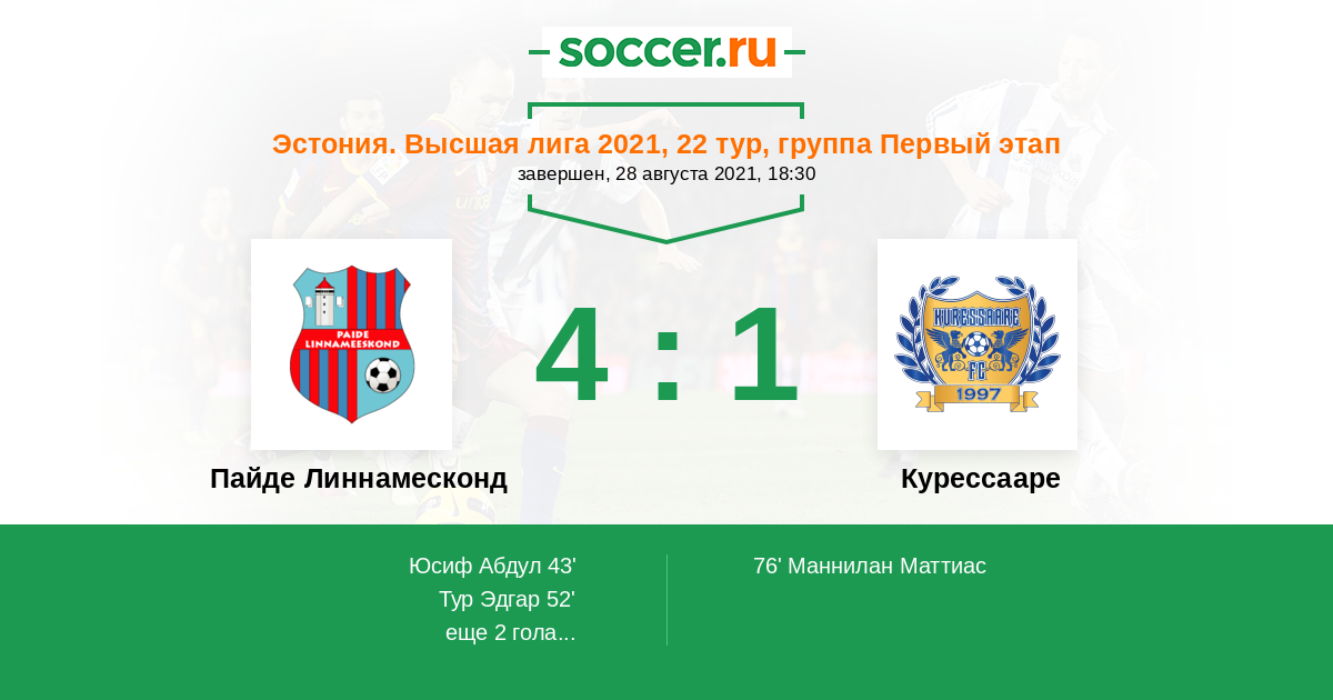 Пайде Линнамесконд - Курессааре: обзор матча 28 августа 2021