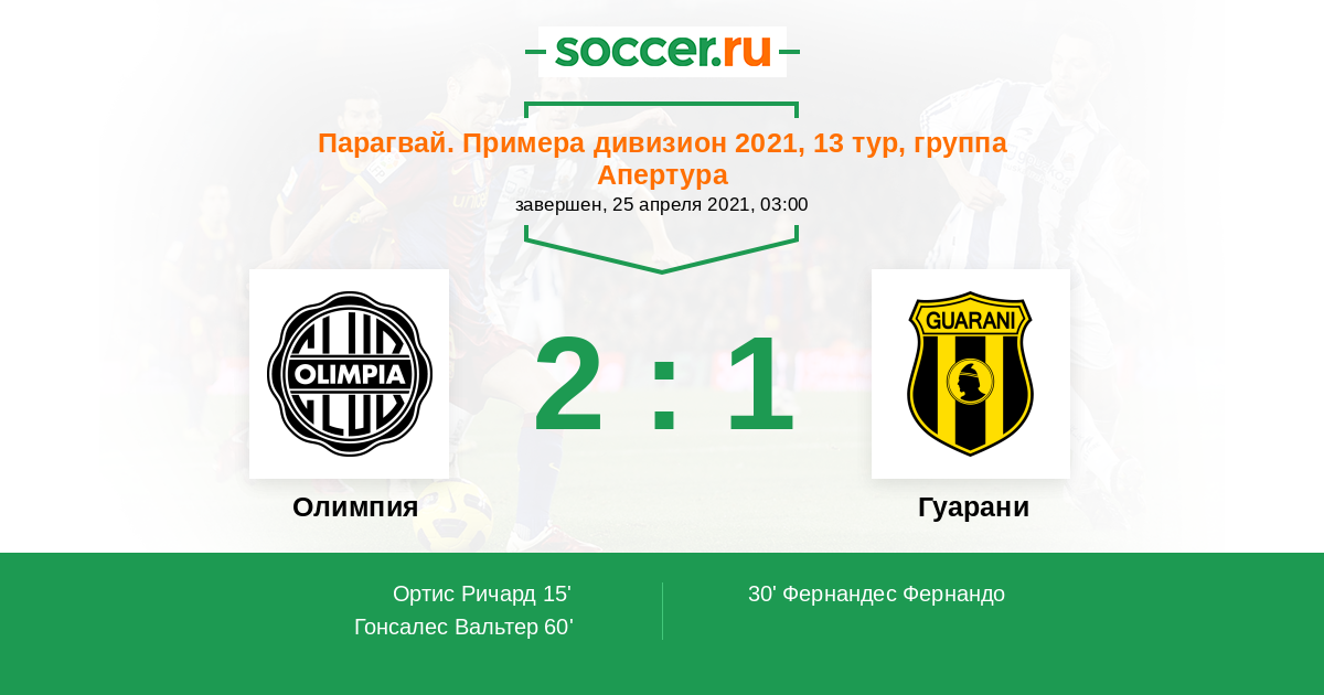 Олимпия - Гуарани: обзор матча 25 апреля 2021
