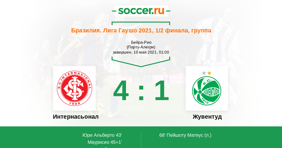 Интернасьонал - Жувентуд: обзор матча 10 мая 2021