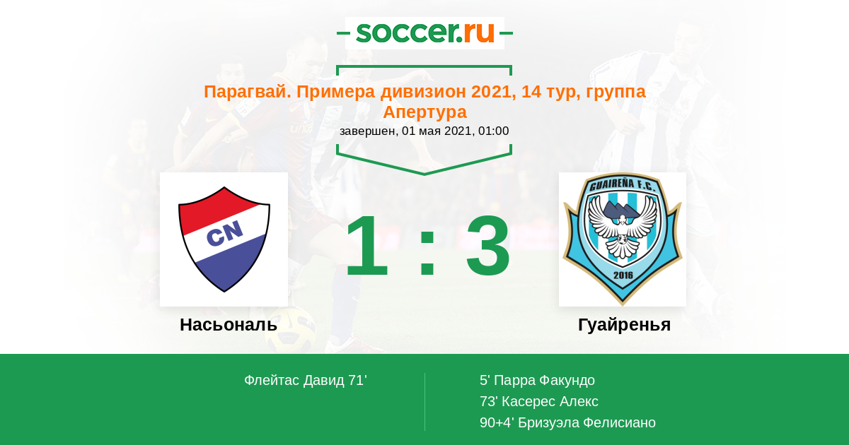 Насьональ - Гуайренья: обзор матча 1 мая 2021
