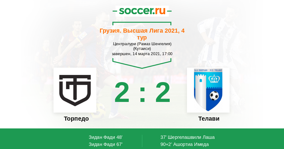 Торпедо - Телави: обзор матча 14 марта 2021