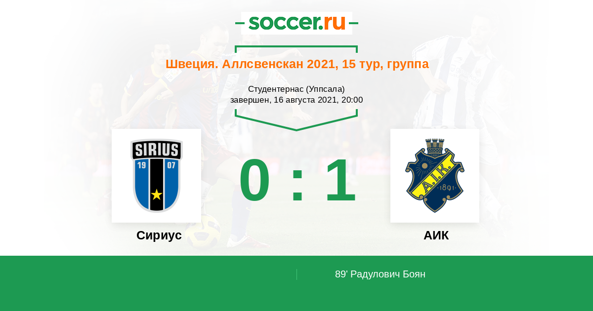 Сириус - АИК: обзор матча 16 августа 2021