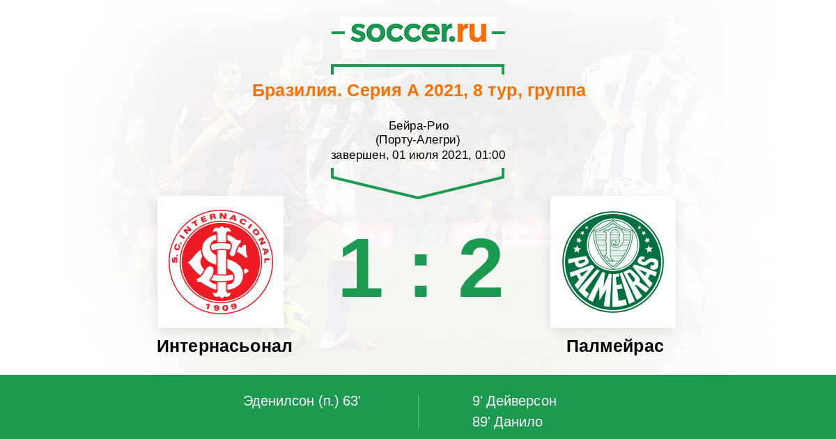Интернасьонал - Палмейрас: обзор матча 1 июля 2021