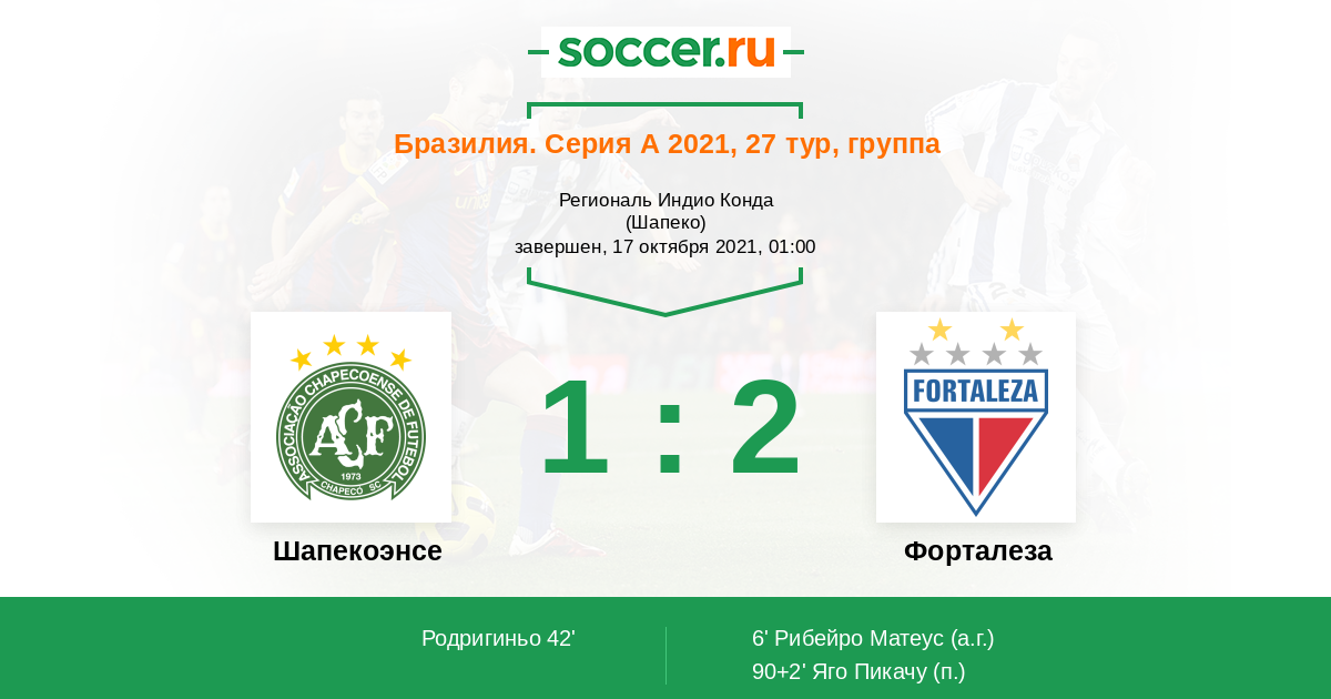 Шапекоэнсе - Форталеза: обзор матча 17 октября 2021