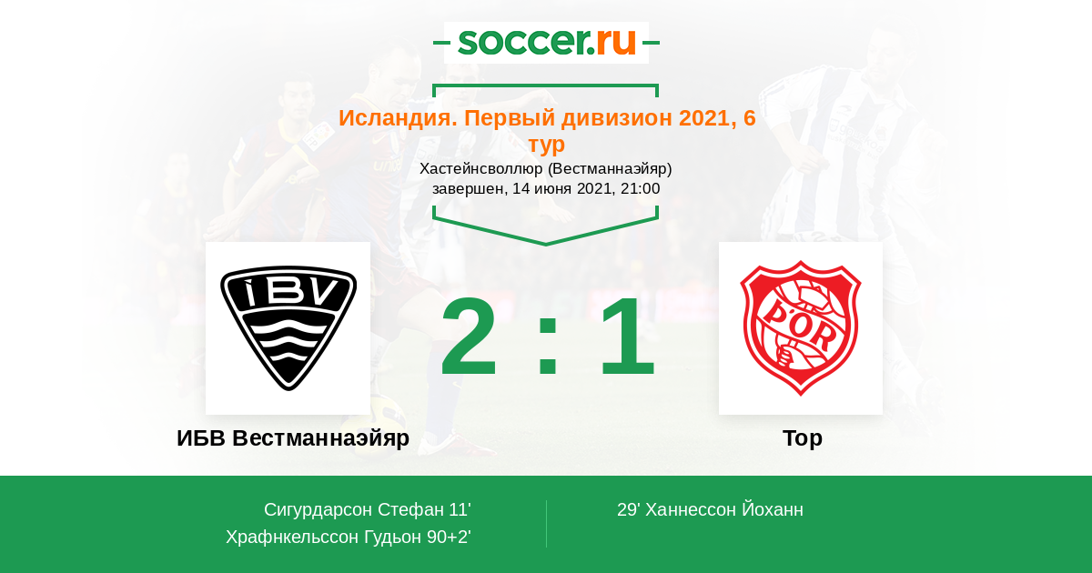 ИБВ Вестманнаэйяр - Тор: обзор матча 14 июня 2021