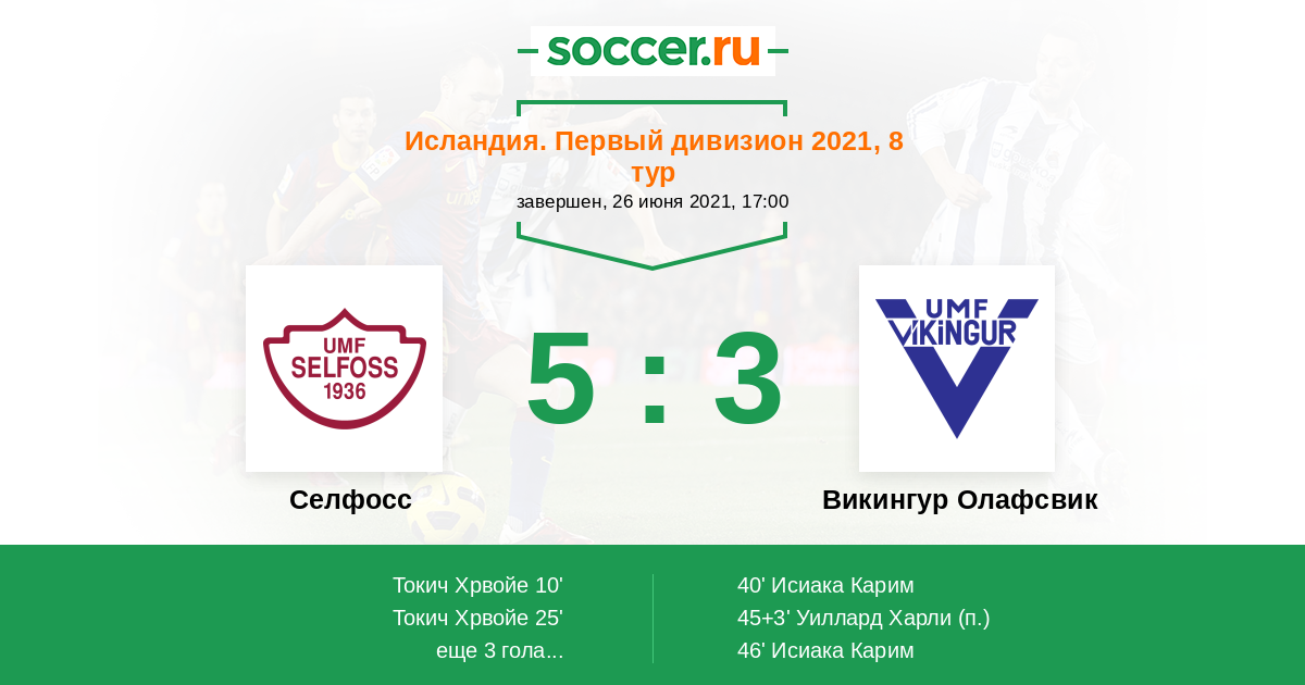 Селфосс - Викингур Олафсвик: обзор матча 26 июня 2021