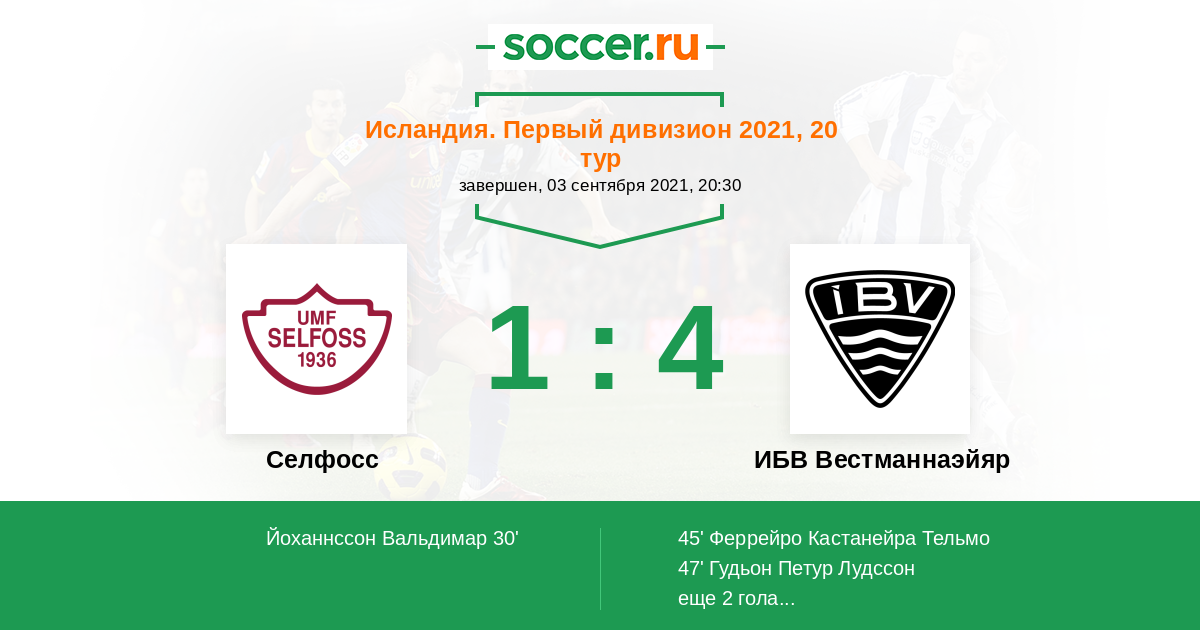 Селфосс - ИБВ Вестманнаэйяр: обзор матча 3 сентября 2021