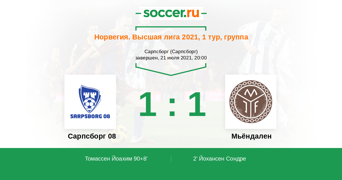 Сарпсборг 08 - Мьёндален: обзор матча 21 июля 2021