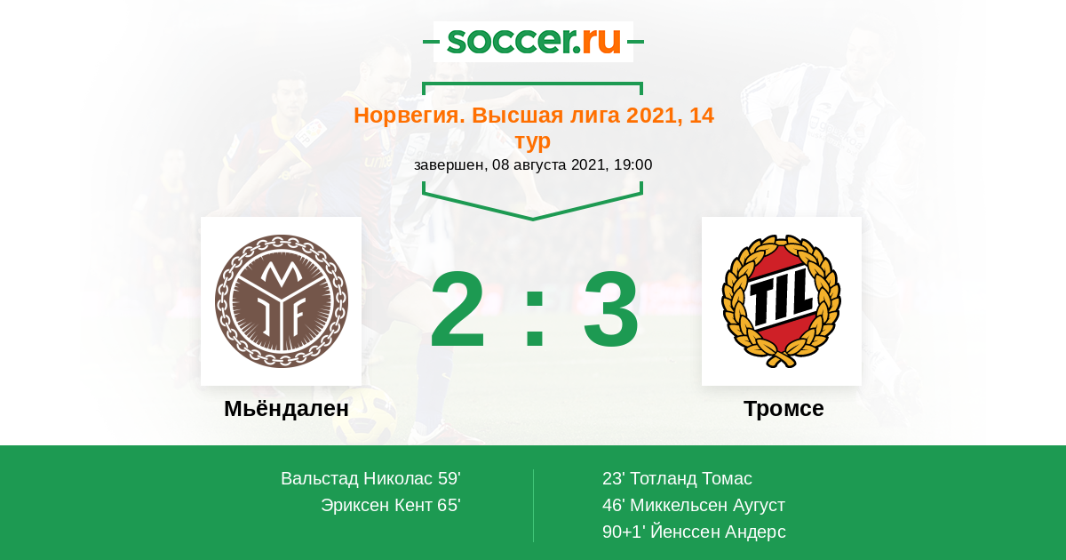 Мьёндален - Тромсе: обзор матча 8 августа 2021