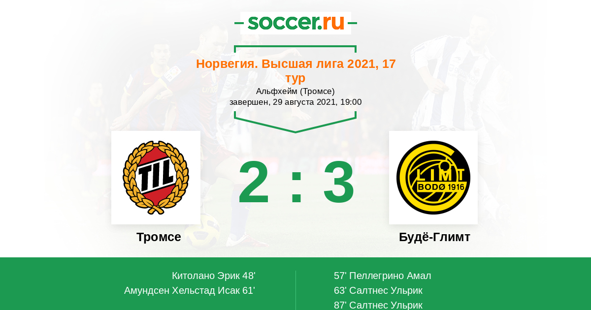 Тромсе - Будё-Глимт: обзор матча 29 августа 2021