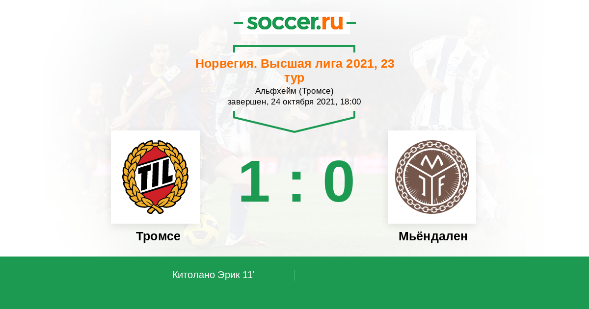 Тромсе - Мьёндален: обзор матча 24 октября 2021