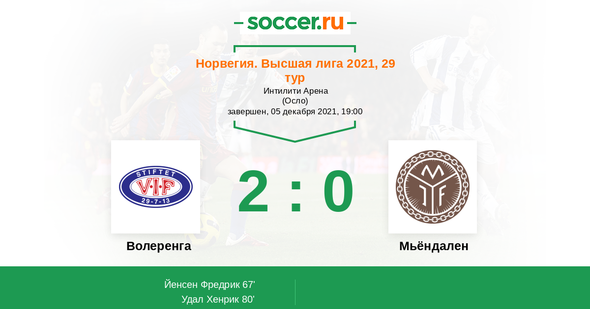 Волеренга - Мьёндален: обзор матча 5 декабря 2021