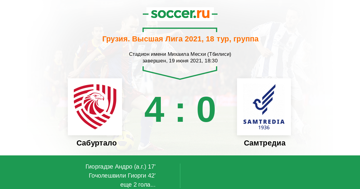 Сабуртало - Самтредиа: обзор матча 19 июня 2021