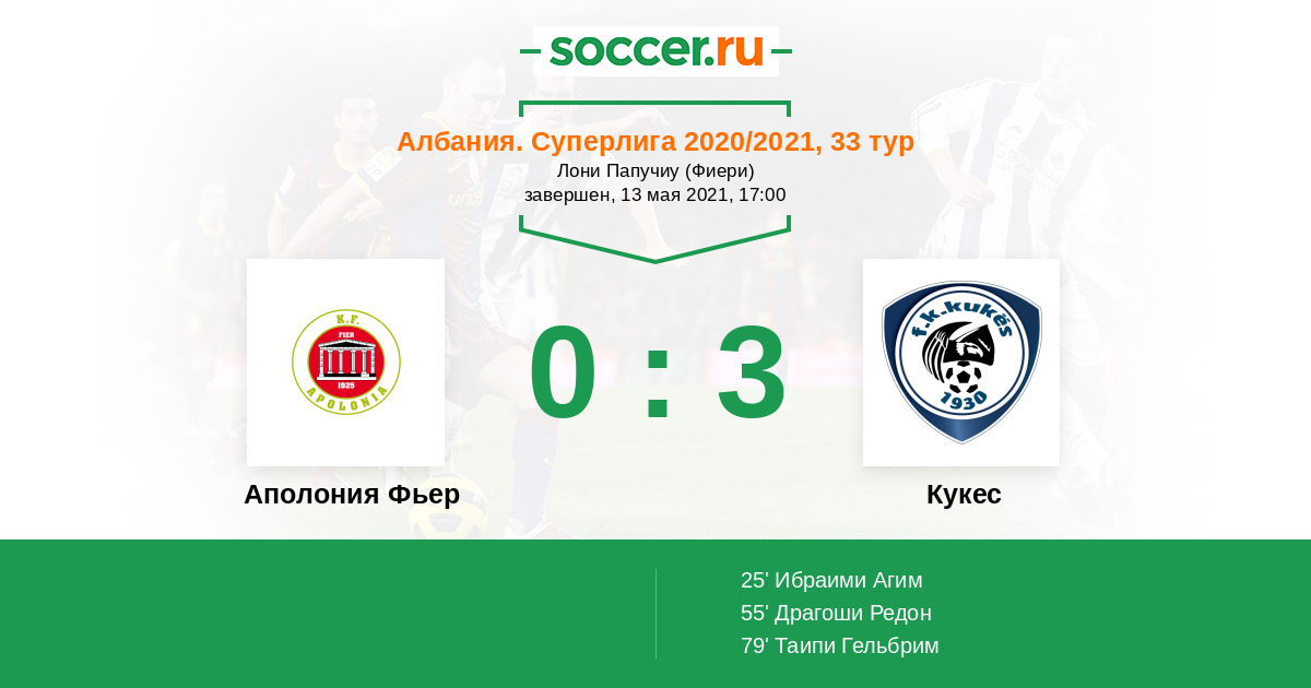 Аполония Фьер - Кукес: обзор матча 13 мая 2021