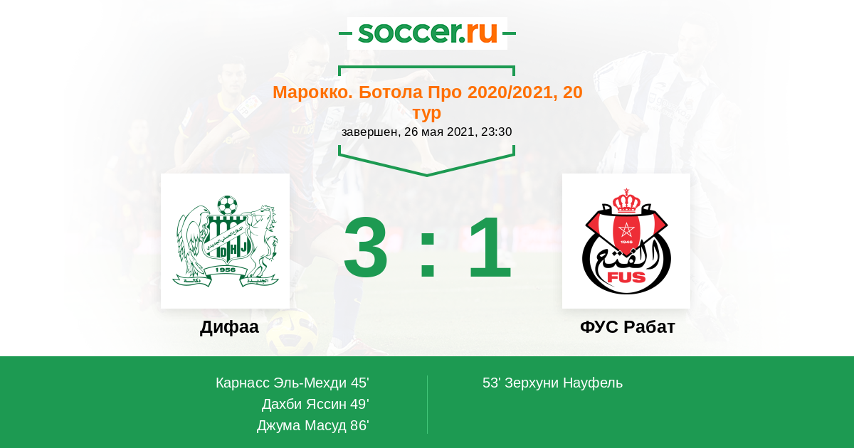 Дифаа - ФУС Рабат: обзор матча 26 мая 2021